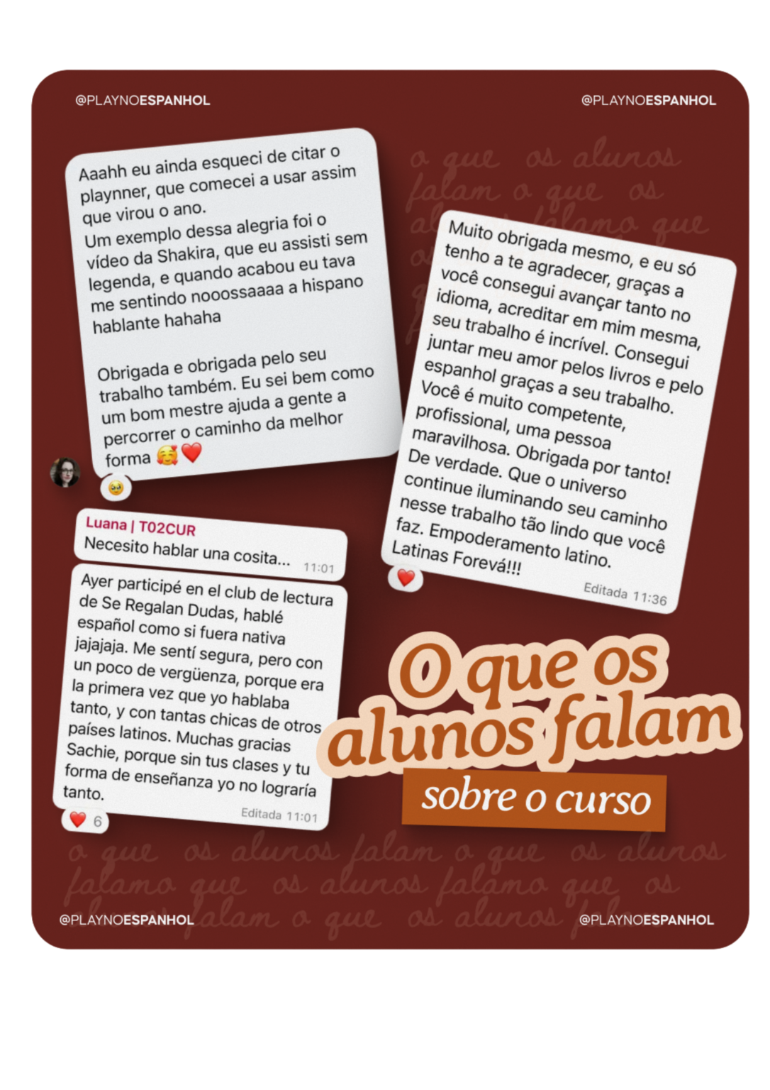 A Jaqueline entrou no curso com o objetivo de aprimorar seu currículo e a capacidade para se comunicar durante suas viagens pelos países hispânicos. Surpreendentemente, as aulas superaram todas as suas expectativas, agora ela consegue se comunicar muito bem e ganhou a confiança que tanto estava procurando.