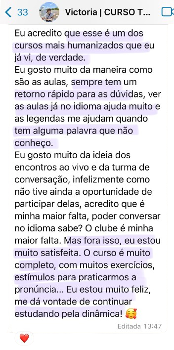 Para destravar sua fala e colocar em prática o aprendido, no clube de conversação você terá encontros semanais comigo e convidados nativos especiais.